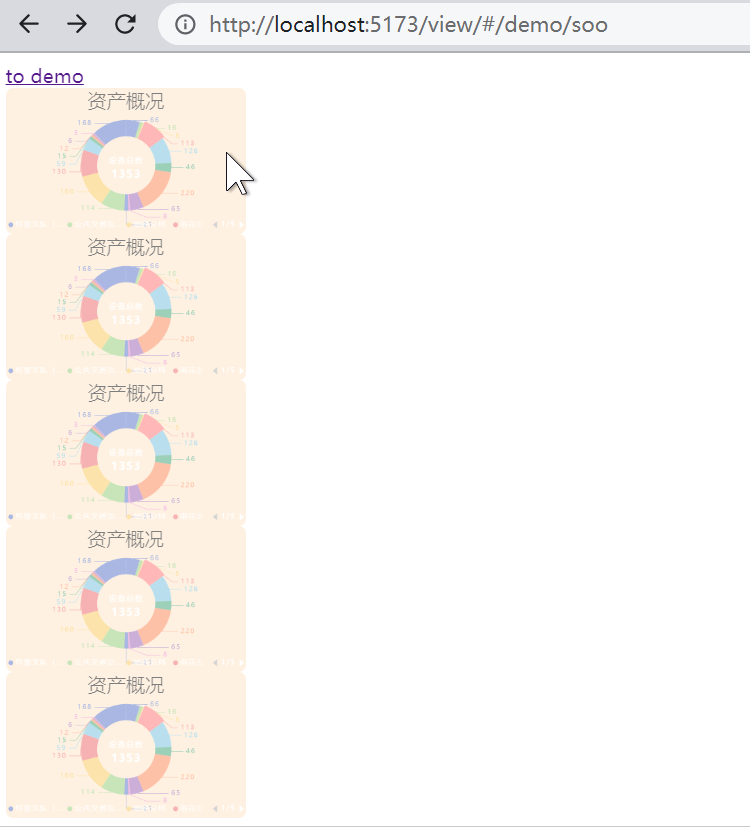 代码写到这里我已经实现我预期的效果的目标,但是当我尝试将多一些的组件去展示动画的时候,此处组件增加到了 5 个,对应的离开当前路由的等待时间也增加到 1500 毫秒,发现了下面的情况